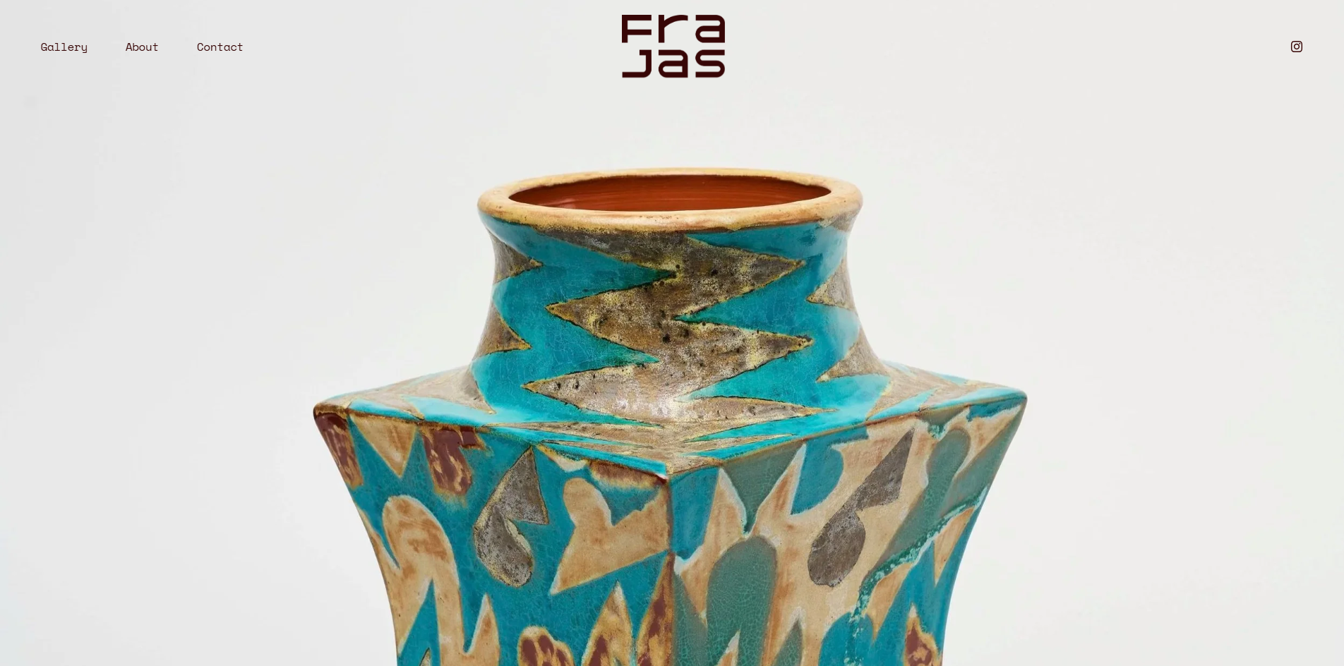 The new website highlights a curated selection of vases, grouped by type and arranged in rows. The vases are professionally documented both individually and in group compositions. Each vase has its own dedicated page, where details of the form and surface are showcased. Group images are shown in the homepage. The final version is built on Squarespace with custom code and offers a responsive experience across devices.